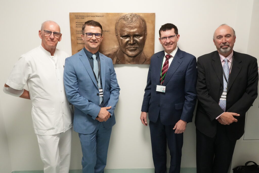 Centralnym punktem uroczystości było odsłonięcie tablicy pamiątkowej poświęconej prof. Januszowi Skowronkowi – założycielowi Zakładu Brachyterapii w WCO, cenionemu specjaliście i mentorowi. Prof. Skowronek nie tylko ukształtował kierunek rozwoju tej dziedziny w Polsce, ale pozostawił po sobie silną szkołę naukową i kliniczną.
