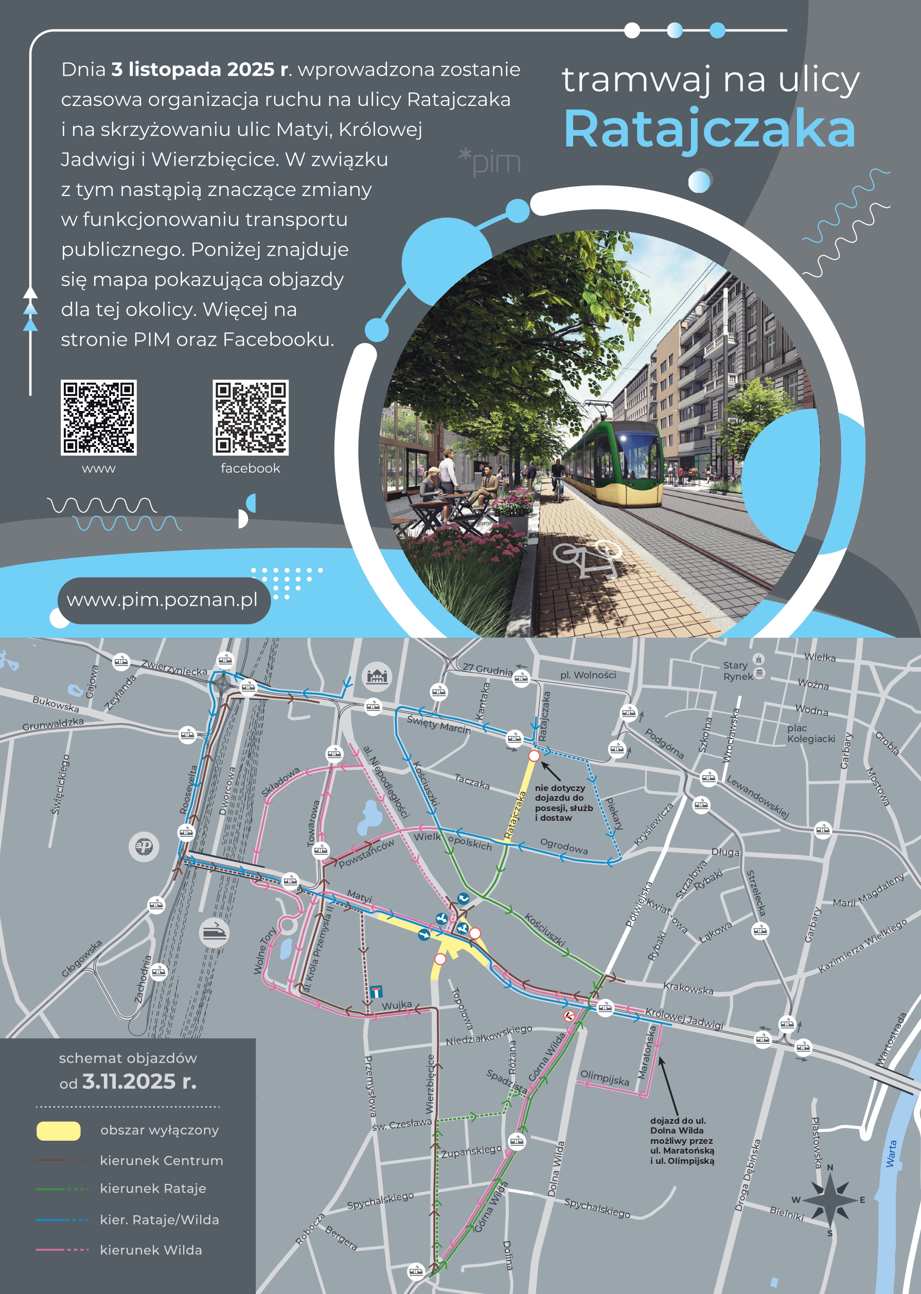 Szczegółowa mapa objazdów i aktualne informacje dostępne są na stronie internetowej: www.pim.poznan.pl”