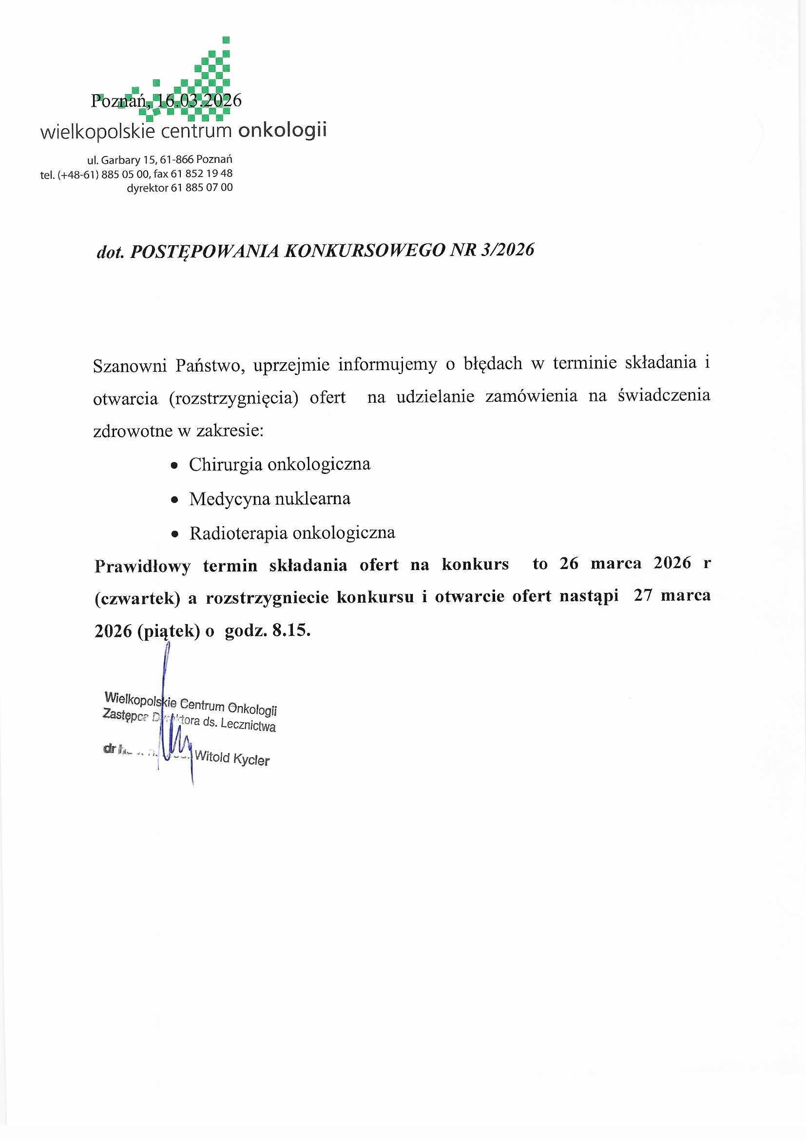 | 7. | POPRAWIONY TERMIN SKŁADANIA I OTWARCIA (ROZSTRZYGNIĘCIA) KONKURSU OFERT | 2026-03-17 | 186.39 KB | Pobierz |