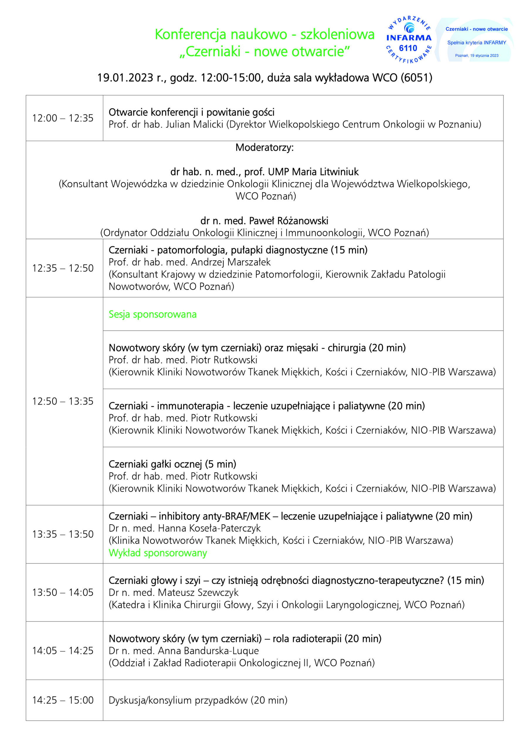 Konferencja naukowo-szkoleniowa „Czerniaki – nowe otwarcie”