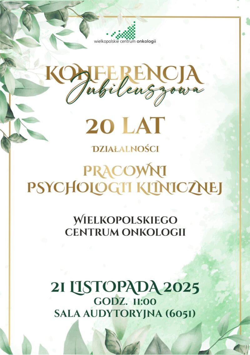 Konferencja Jubileuszowa: 20-lecie działalności Pracowni Psychologii Klinicznej Wielkopolskiego Centrum Onkologii