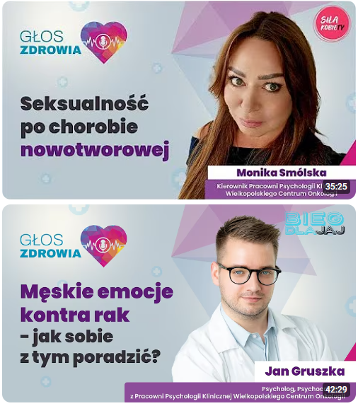 Szanowni państwo zapraszamy do zapoznania się z wywiadami, w których uczestniczyli pracownicy Pracowni Psychologii Klinicznej. Pani Kierownik magister Monika Smólska mówi o seksualności po chorobie onkologicznej a magister Jan Gruszka o emocjach i męskim zdrowiu. Zachęcamy do zapoznania się z materiałami, do których linki zamieszczamy poniżej!