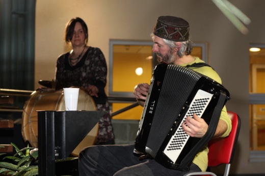 Podczas spotkania Pan Jacek Hałas opowiadał o pochodzeniu tak instrumentów na jakich grał z żoną jak i poszczególnych pieśni i melodii. Utwory których wysłuchaliśmy były bardzo zróżnicowane w swoim nastroju- poznaliśmy zarówno refleksyjne pieśni o bardzo długiej tradycji jak i bardzo radosne, taneczne melodie. Po koncercie mieliśmy możliwość rozmowy, wspólnych zdjęć, \" próbowania instrumentów\"...