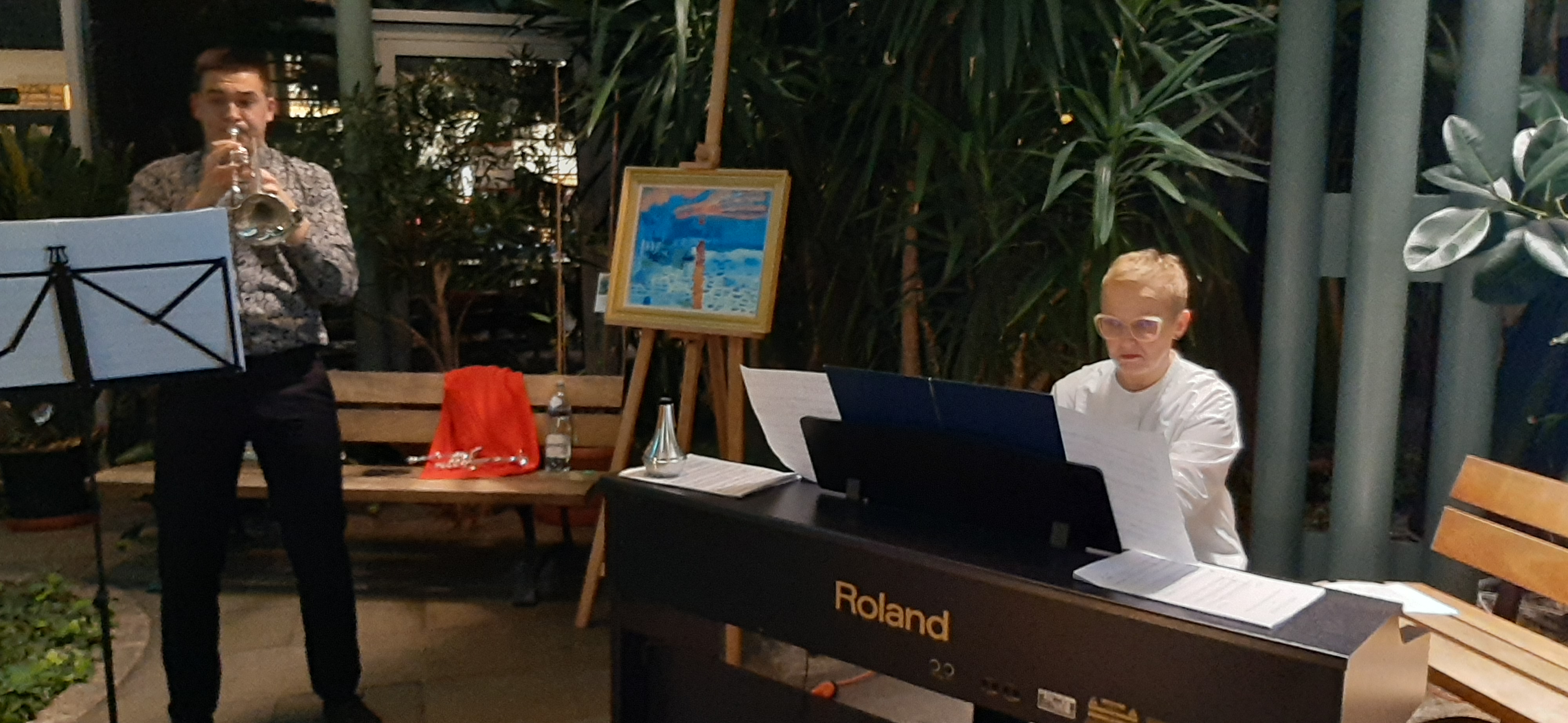 W dniu 23.03.2023 r. gościliśmy w Ogrodzie Zimowym Pana Karola Łopińskiego z Zespołu Szkół Muzycznych przy ul. Głogowskiej w Poznaniu,, który zagrał na trąbce recital dyplomowy . Przy fortepianie zasiadła niezastapiona Pani Joanna Karpacz-Kowalkowska.