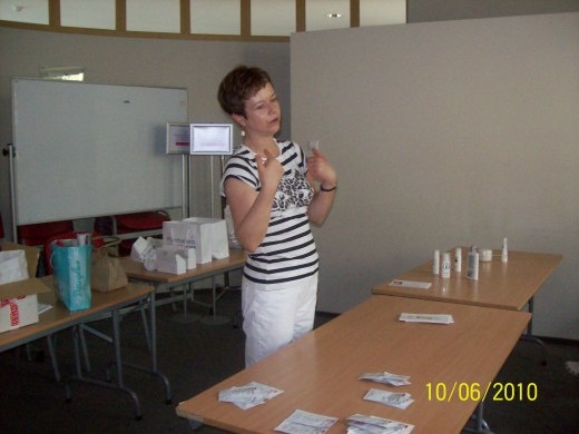 Dnia 10.06.2010r. odbyło się kolejne spotkanie z kosmetyczką. Pani Beata udzielała porad o pielęgnacji skóry w czasie radioterapii i chemioterapii. Spotkanie przebiegało w miłej atmosferze; pacjentki otrzymały kosmetyki do pielęgnacji skóry po naświetlaniach oraz wrażliwej i podatnej na alergie. Bardzo dziękujemy Pani Beacie za poświęcenie swojego wolnego czasu i Laboratorium Kosmetycznemu Dr Irena Eris SA oraz firmie NEPENTES S.A. za nieodpłatne udostępnienie kosmetyków.