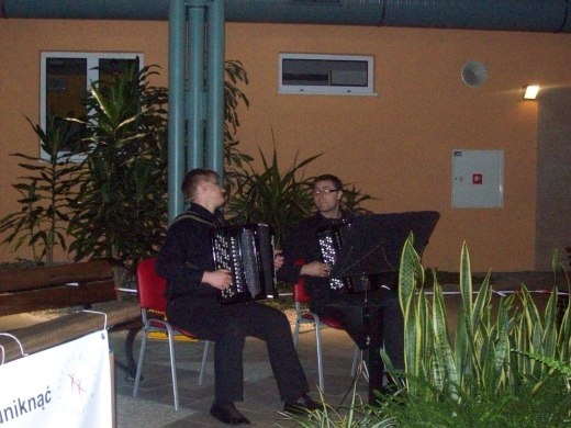 Natomiast w dniu 25 listopada w Ogrodzie Zimowym wystąpił Duet Akordeonowy w osobach Pana Michała Gajdy oraz Pana Konrada Mikołajczyka. Duet założony został w roku 2008 na Akademii Muzycznej im. I.J.Paderewskiego w Poznaniu. Nadzór artystyczny prowadzi Pan prof. Jerzy Kaszuba. W ciągi dwuletniej działalności duet może poszczycić się wieloma nagrodami na prestiżowych konkursach w kraju i zagranicą: