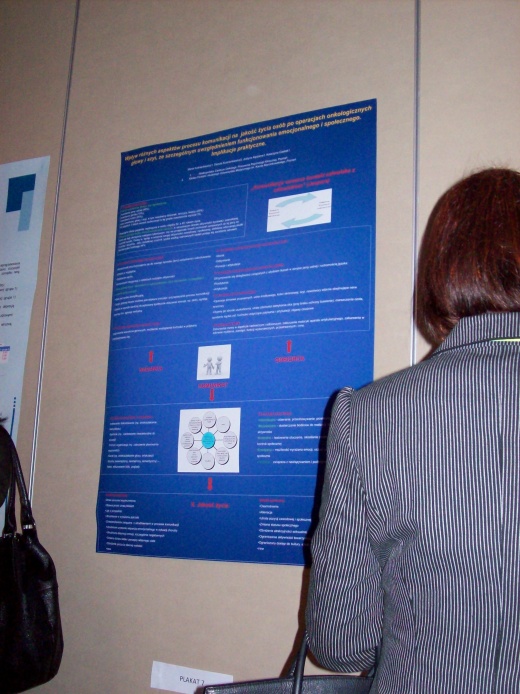 - Maria Kuśnierkiewicz, Justyna Kędziora i Katarzyna Cieślak z naszej pracowni wraz z Danutą Kuśnierkiewicz przygotowały plakat dotyczący wpływu różnych aspektów procesu komunikacji na jakość życia osób po operacjach onkologicznych głowy i szyi, ze szczególnym uwzględnieniem funkcjonowania emocjonalnego i społecznego.