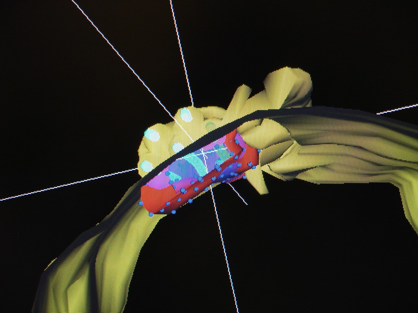 Plan leczenia - obraz 3D (trójwymiarowy) - CTV oraz aplikatorów w guzie