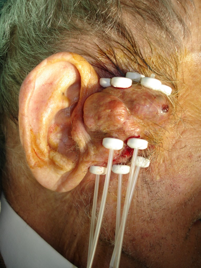 Widok aplikatorów elastycznych do brachyterapii po zabiegu